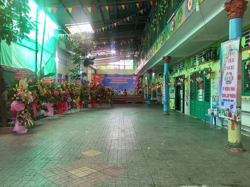 Nằm trong hẻm nhỏ cách đường lớn 50m yên tĩnh. Đường rộng xe ô tô tránh nhau được, nơi để xe của phụ huynh có mái che thuận tiện cho Phụ huynh đưa đón con.